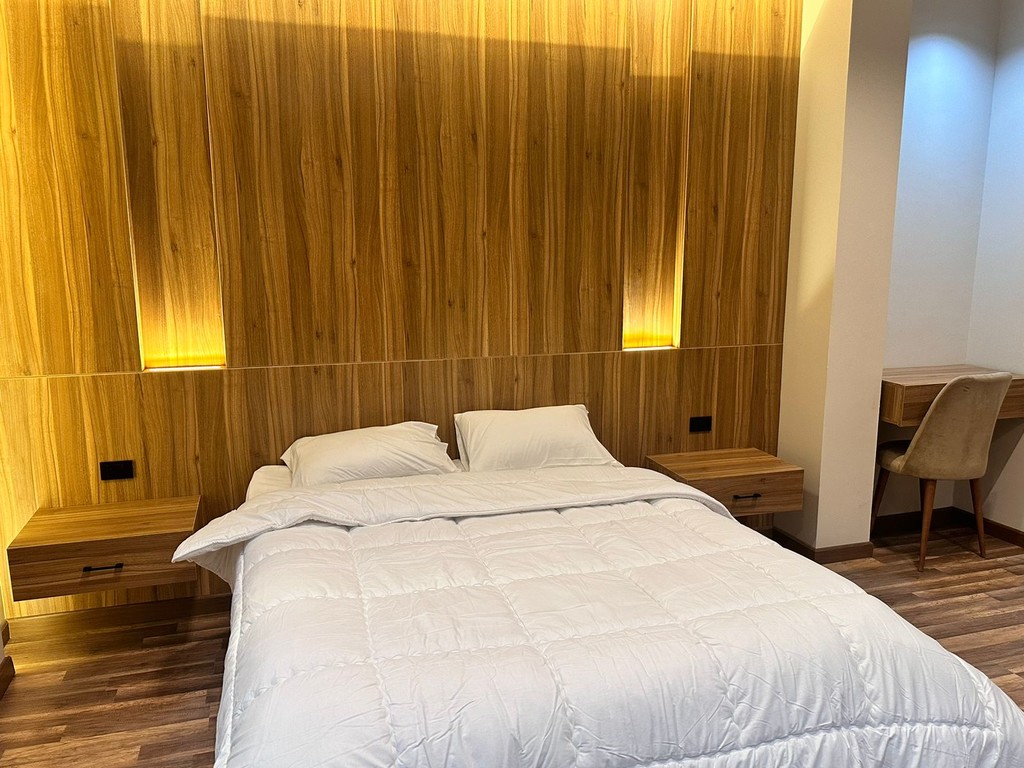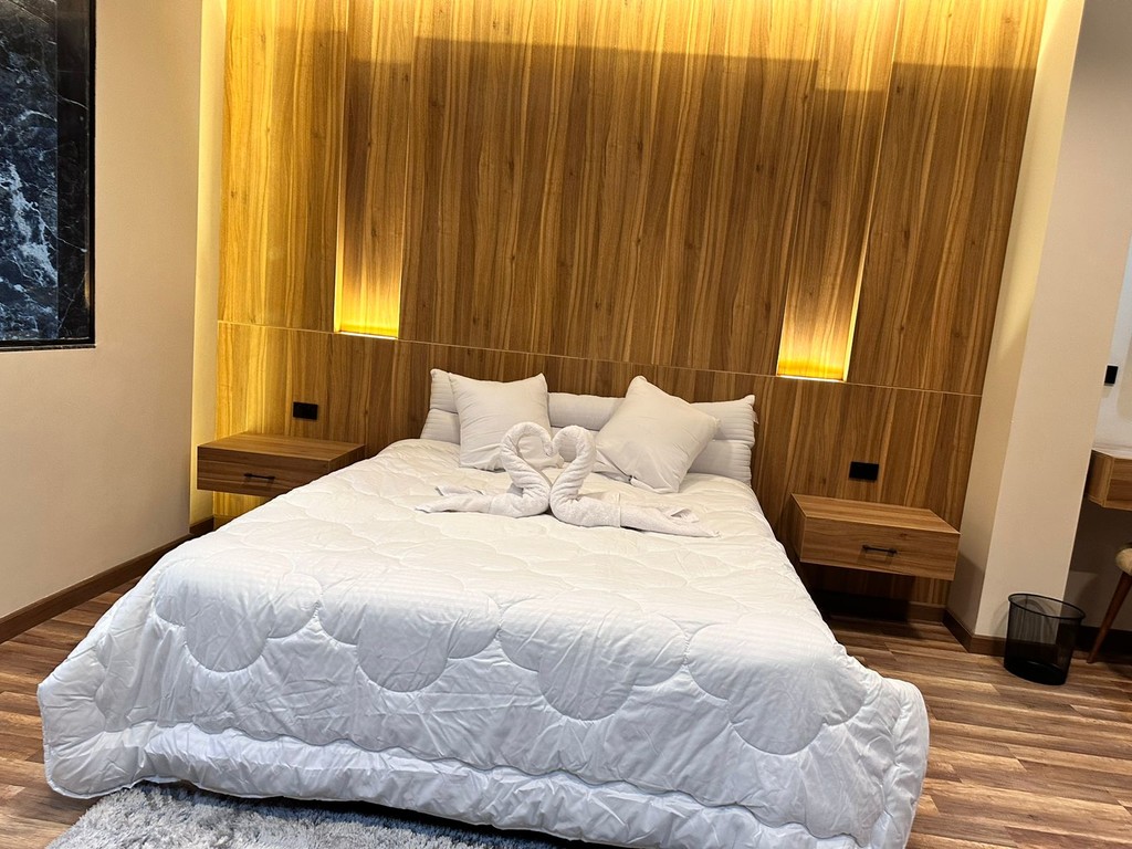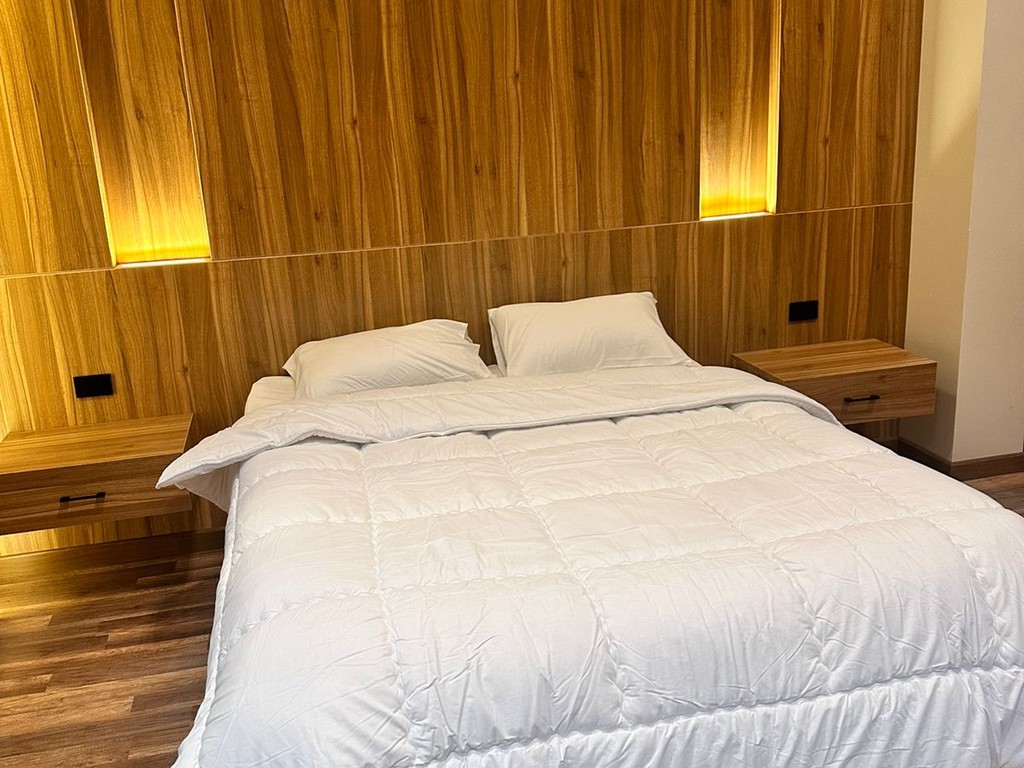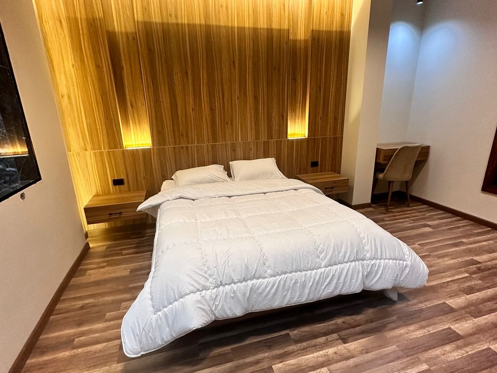 The modern and attractive decor adds a touch of elegance, with luxurious bedspreads made of ostrich feathers and a medical mattress ensuring a peaceful sleep. The warm wooden floors complete the feeling of comfort and welcome.