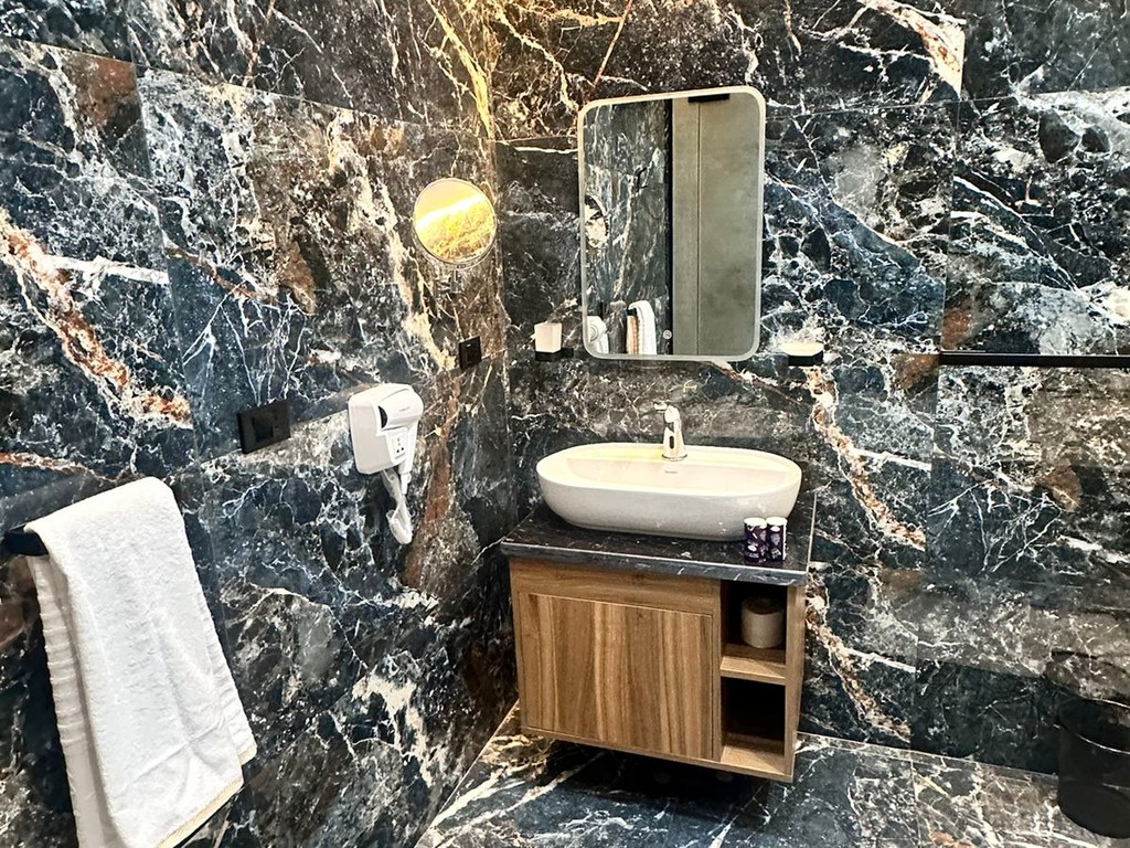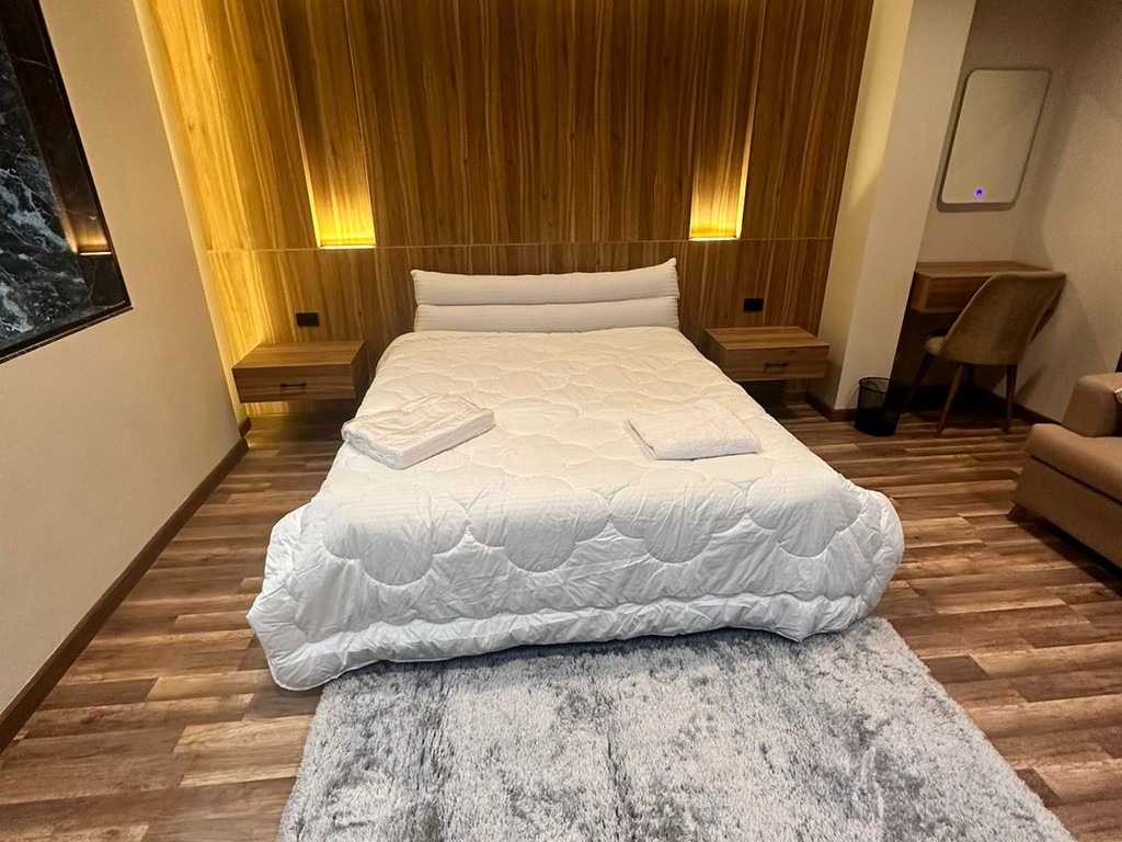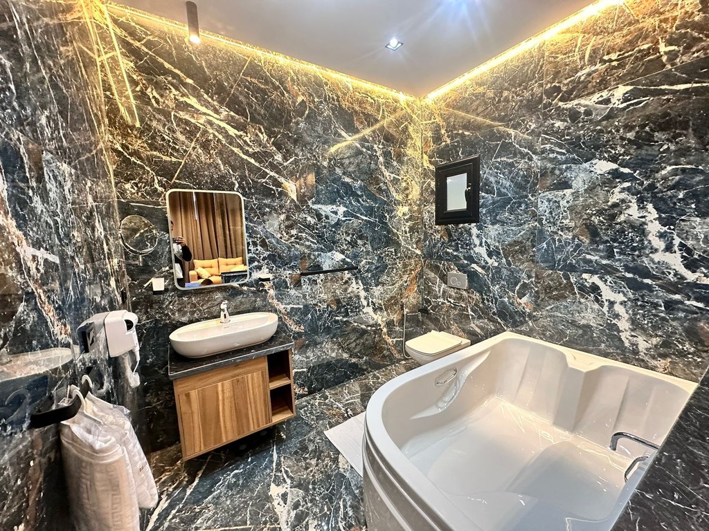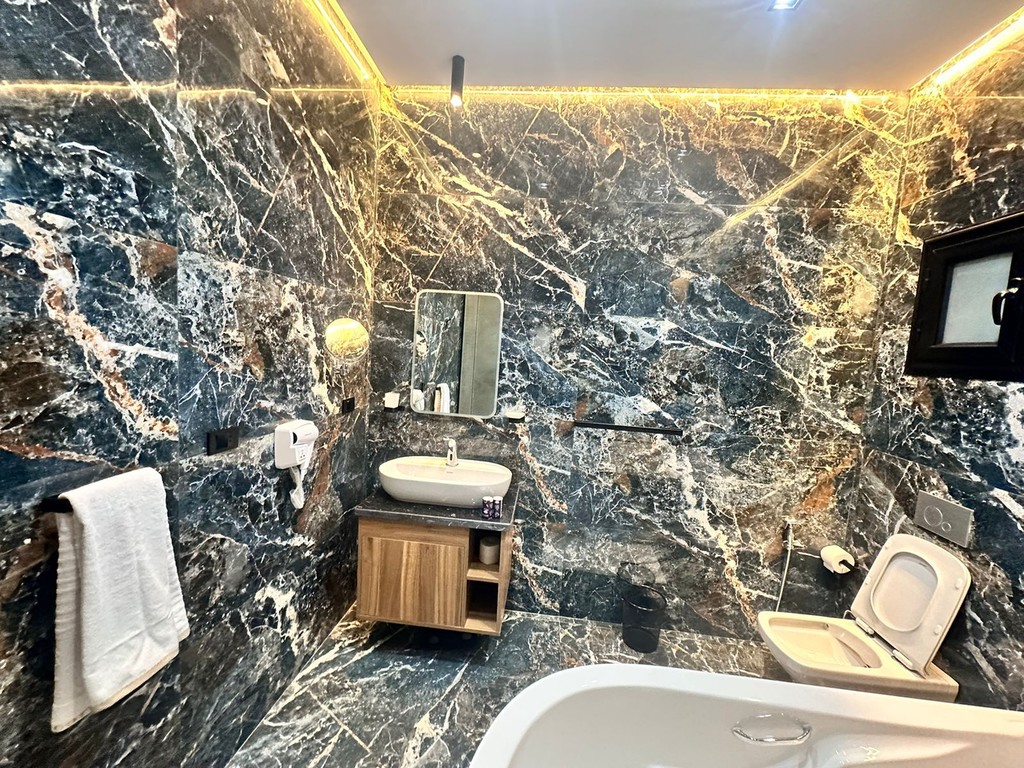 Book NowEnjoy a luxurious stay in our spacious 50 square meter hotel room, where luxury and modern design converge to provide an unforgettable experience. The room is equipped with a high-quality coffee machine to ensure your day starts with energy and vitality. Enjoy a luxurious panoramic bathroom featuring a bathtub shower and hot water for an ideal bathing experience.