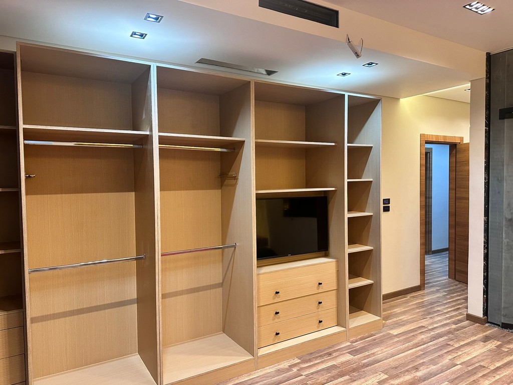 The room features a wide television screen and a lighting system that operates with sensors to create the perfect atmosphere at every moment. The comfortable sofa easily converts into a bed to accommodate a third person, while the fully equipped desk provides an ideal space for work.