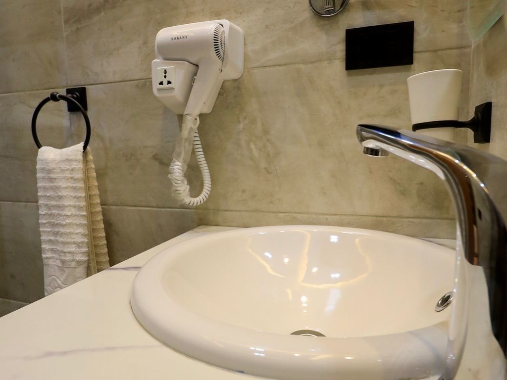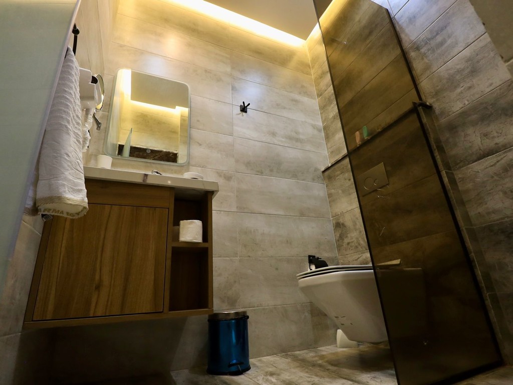 - A contemporary bathroom, fitted with premium amenities for maximum comfort and cleanliness.